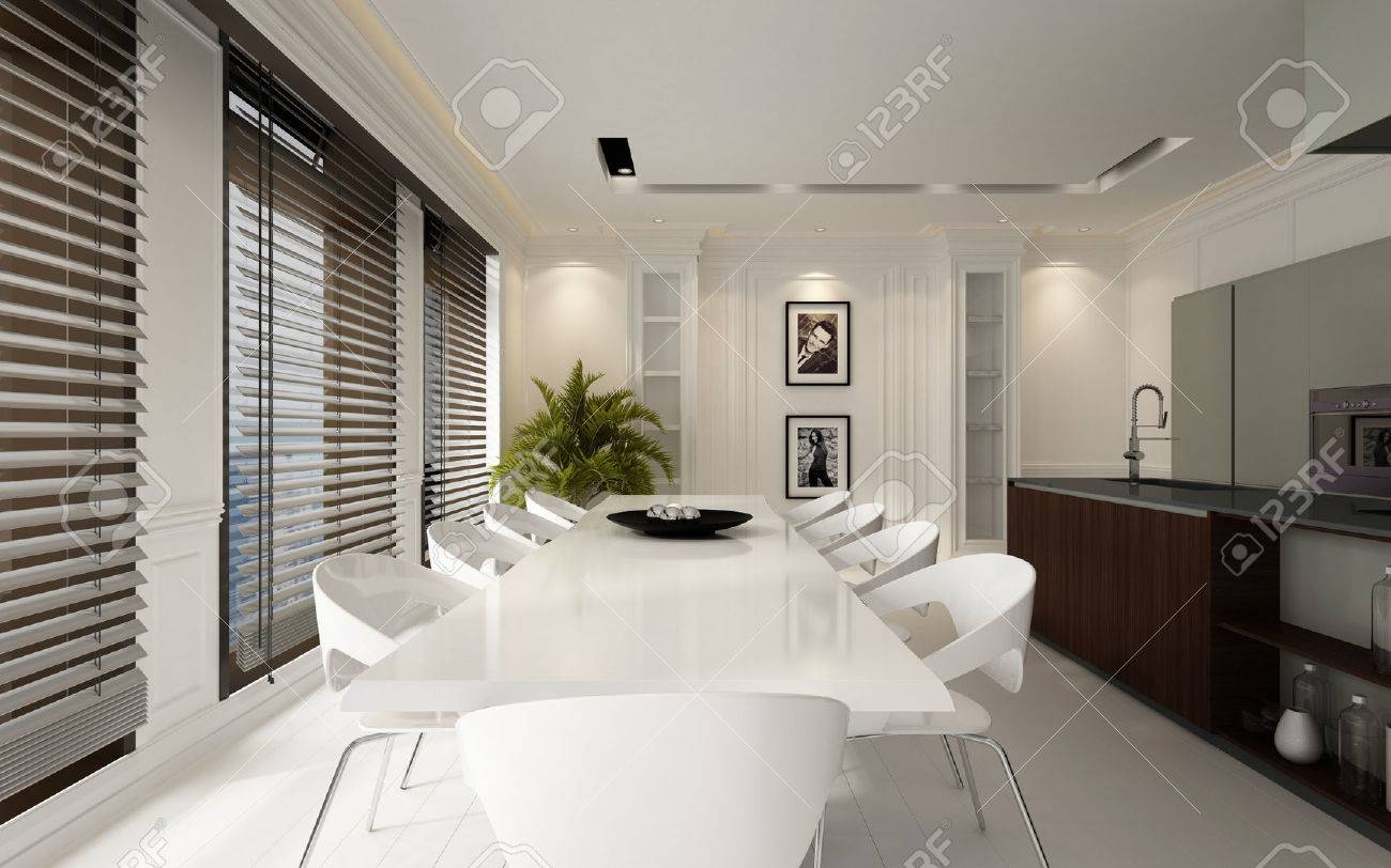 Large Dining Room In Luxury House Large Dining Room With Wooden Table Set Antique Cabinet And Fireplace In Luxury House from comps.canstockphoto.com